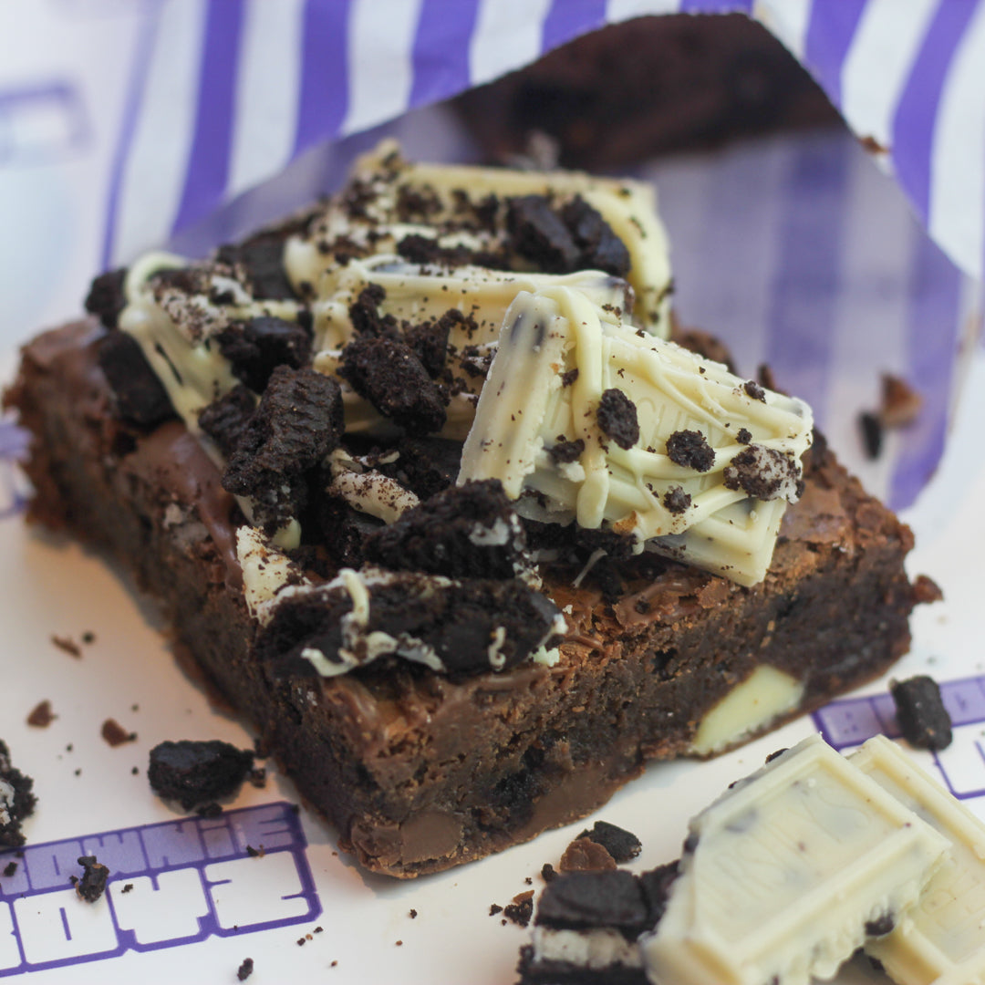 Ingredients: Butter, eggs, dark chocolate, sugar, flour, Oreo, milk chocolate, white chocolate, cookies & cream,