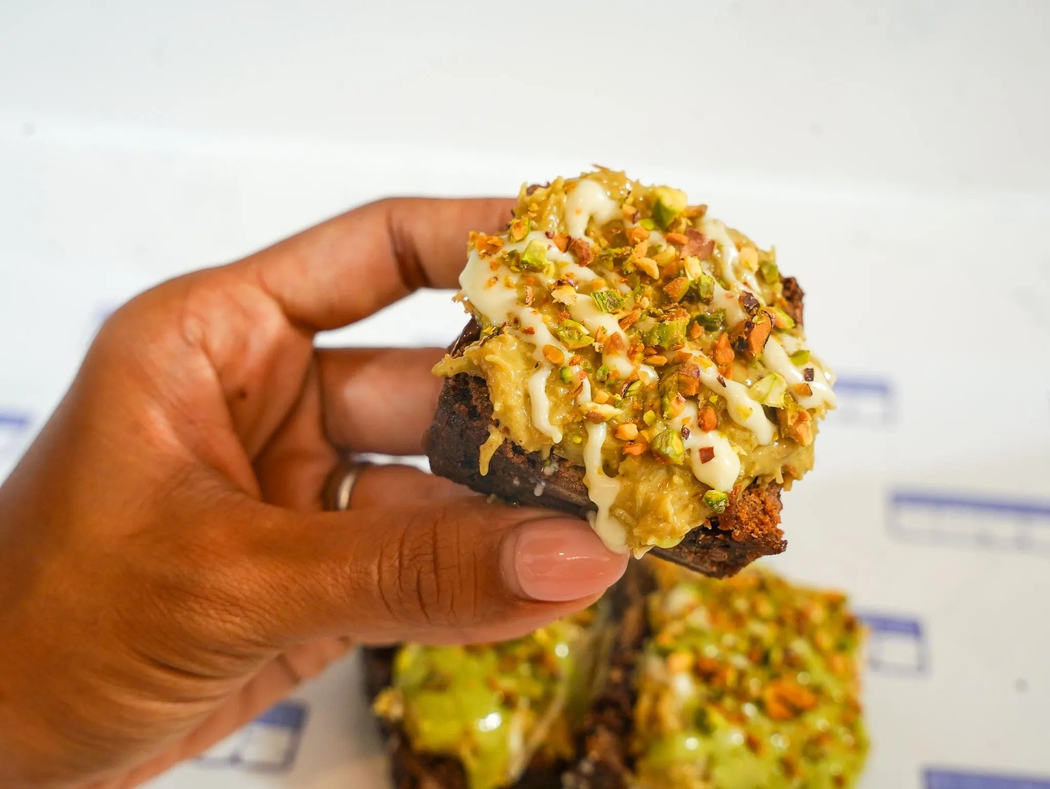 4 brownies = 1 x Peanut Butter Bad boy 1x The Caramel King 1x The one with cookies and cream 1x The Biscoff Bonanza